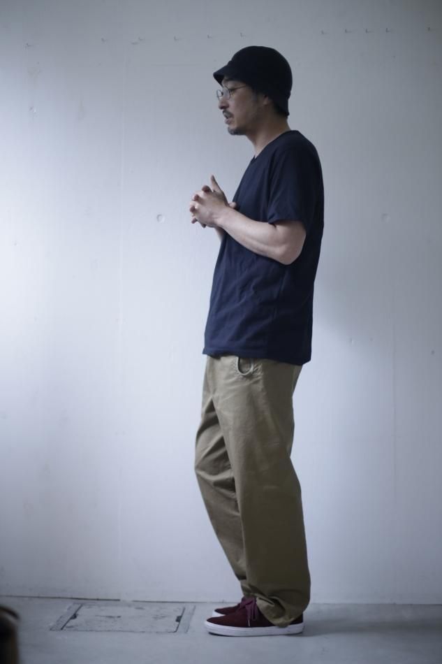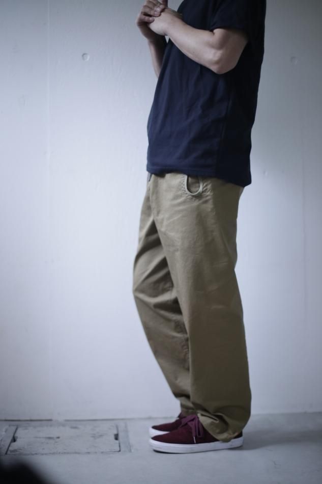 通常パンツは前身と後身の2つのパーツを縫い合わせて筒にしますが、脇にくる縫い目を無くし、股下だけの縫いで筒にした一見変な作りも特徴的です。