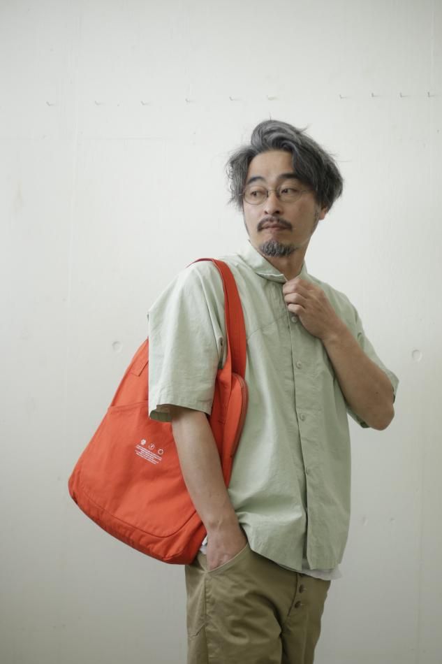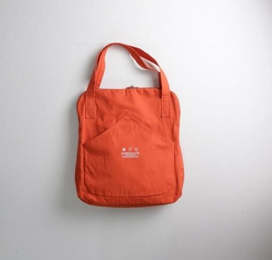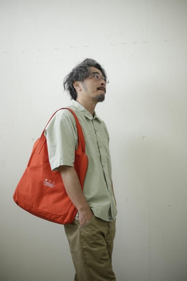 STYLE NO:R251231 【素材】綿 100% 【remilla さんより商品紹介】 11合帆布を使用。そら豆の形状からインスピレーションを受けたショルダー型のバック。 作りとしては、どちらかでも開閉しやすい頭合わせのビスロンファスナーが付き、表にはアイコン的なカンガルーポケット。中には裏地が付き、小物の仕分けが出来るポケットが付きます。 縦:約43cm 横:約38cm